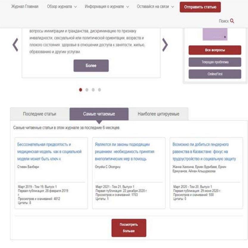 Статьи ученых кафедры «Юриспруденция» Института истории и права КазНПУ имени Абая профессоров Хамзиной Ж.А. и Бурибаева Е.А. «Is it possible to achieve gender equality in Kazakhstan: Focus on employment and social protection» и «Gender equality in employment: The experience of Kazakhstan» в авторитетном журнале International Journal of Discrimination and the Law (издательство Sage, USA), индексируемом в международных базах Web of Science и Scopus, получили высокое признание в научной среде и попали в ТОП-3 самых скачиваемых и читаемых статей издания.