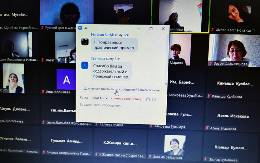 Тыңдаушылар лектор мен вебинар ұйымдастырушыларына алғыстарын білдірді, сабақтың жоғары деңгейде өткенін атап өтті.