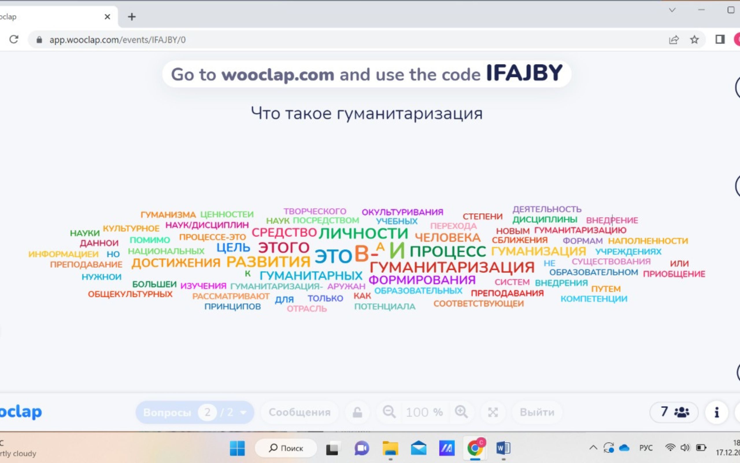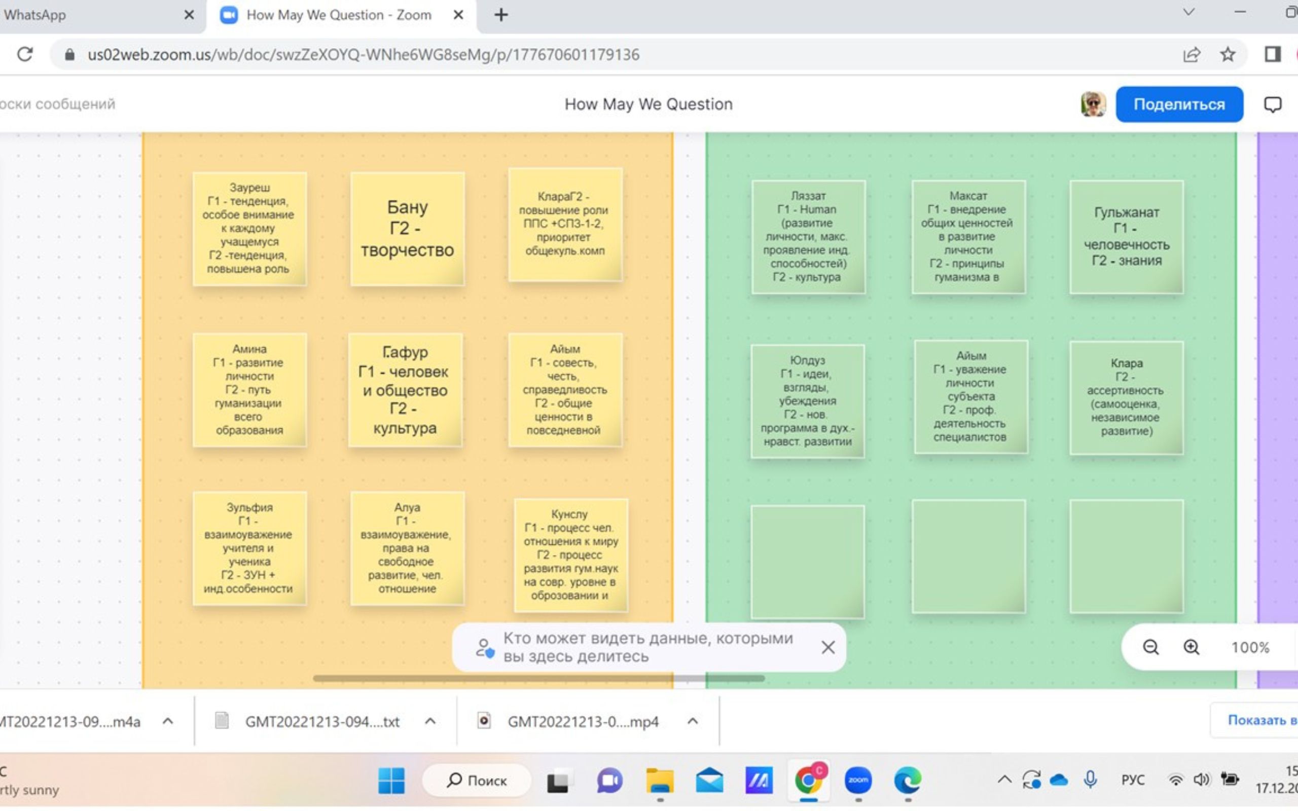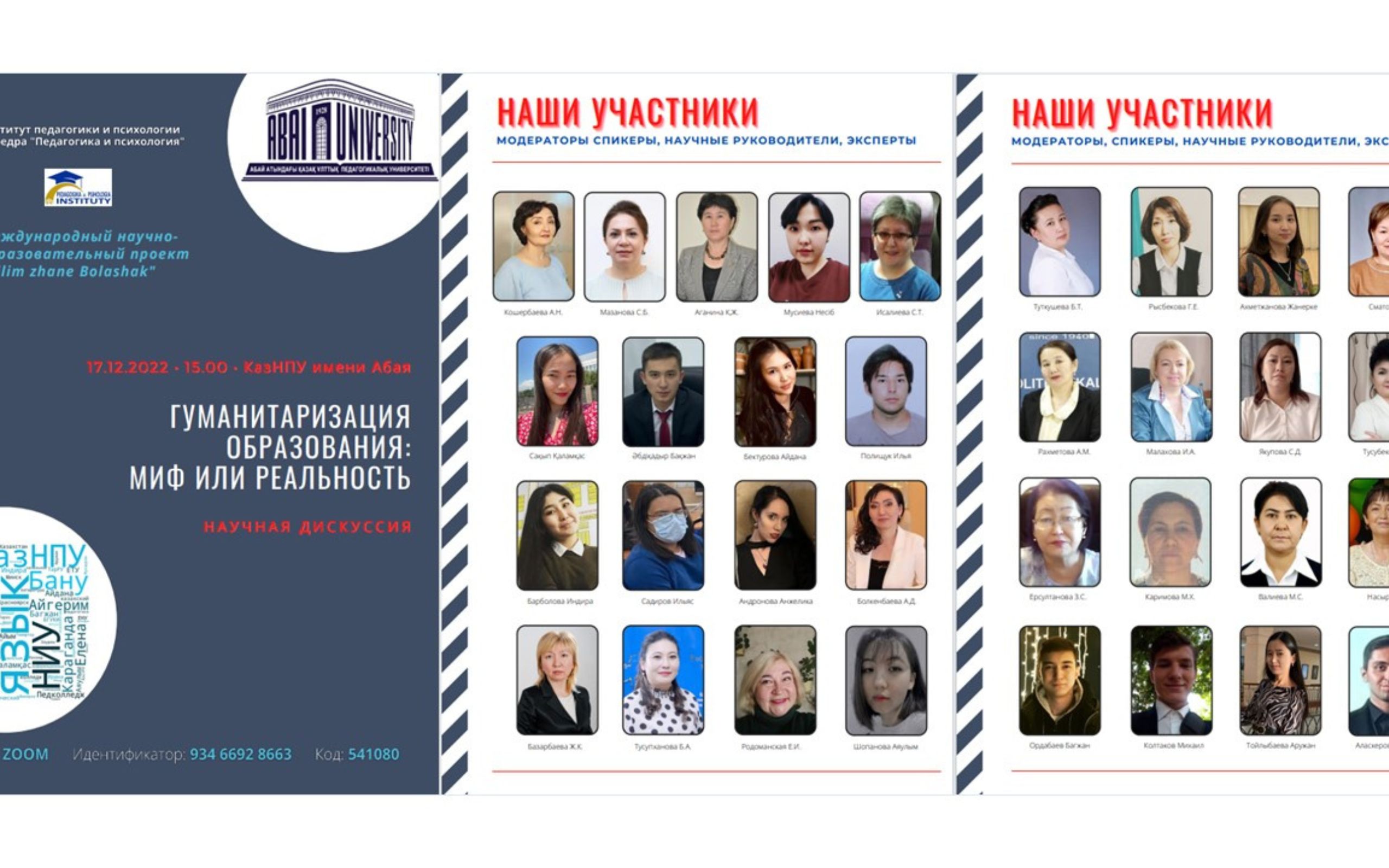 17 декабря 2022 года в КазНПУ имени Абая в онлайн-формате состоялась научная дискуссия (международная научно-практическая конференция) «Гуманитаризация образования: миф или реальность». Модераторами выступили магистранты 2-го курса специальности «7М01103-Педагогика и психология: Менеджмент в образовании».