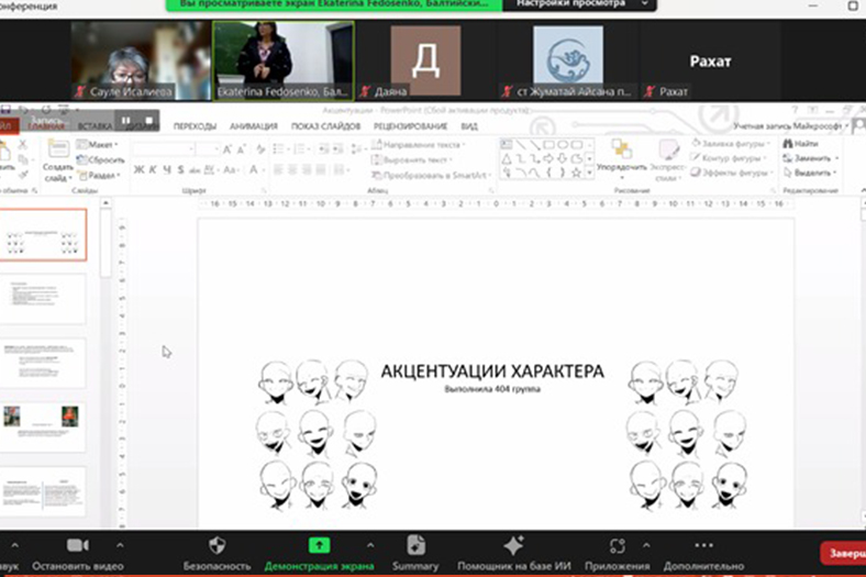 На первой встрече участники мероприятия рассказали о своих вузах, затем узбекские студенты прочитали интерактивную лекцию «Психология характера». Совместное занятие прошло в рамках II марафона международных онлайн-занятий, который проводится в течение учебного года. Они запланированы не только для студентов, но и для учителей школ Казахстана и Узбекистана, что стало уже доброй традицией и способствует укреплению взаимного сотрудничества.