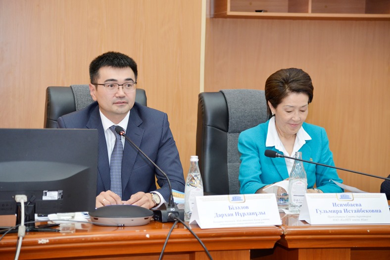 Модератором был председатель Правления - ректор КазНПУ им. Абая Билялов Д.Н., который выступил с приветствием к участникам данного мероприятия. С приветственным словом выступила и председатель Совета директоров НАО «КазНПУ имени Абая» Г.И.Исимбаева, которая поделилась воспоминаниями о сотрудничестве с Григорием Абрамовичем в годы её руководства Департаментом образования г. Алматы.