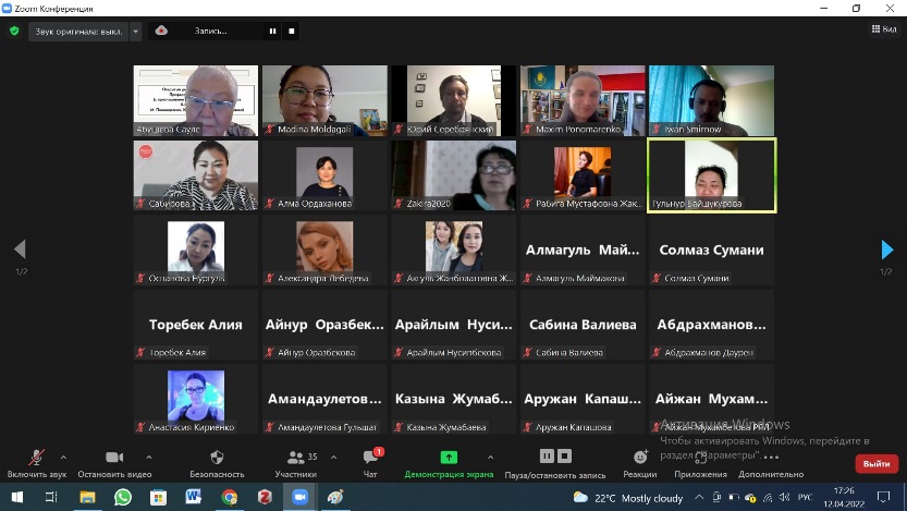 12 апреля 2022 г. на кафедре русского языка и литературы Института филологии состоялся Открытый диалог «Молодёжь. Наука. Профессиональное развитие» с участием польских ученых - выпускников КазНПУ им. Абая М. Пономаренко, Ю. Серебрянского, И. Смирнова.