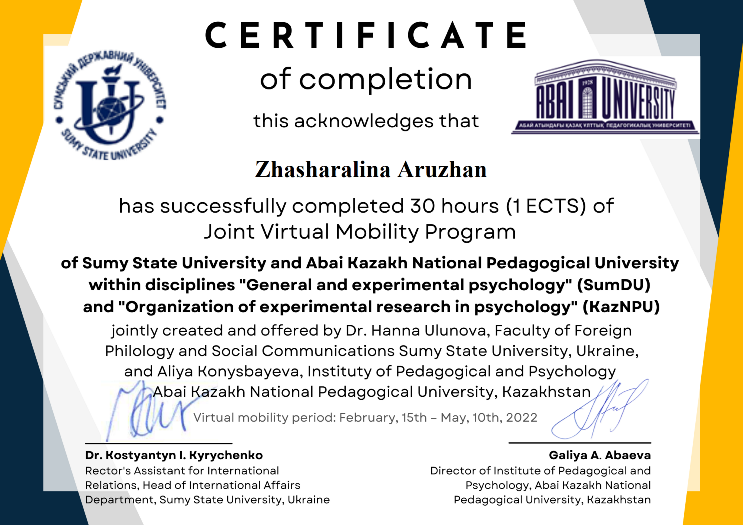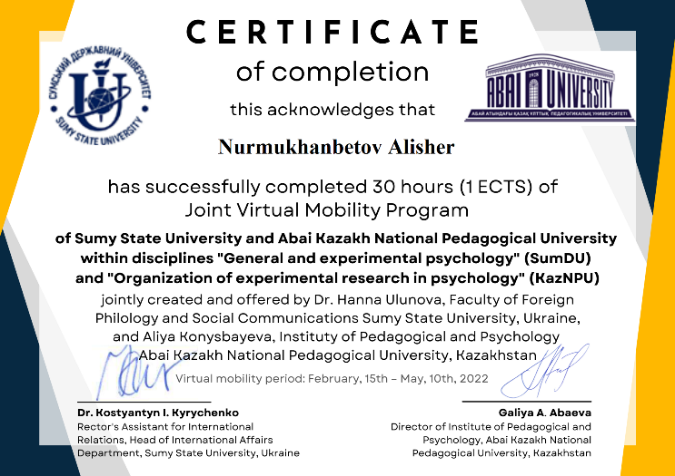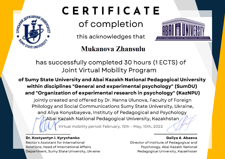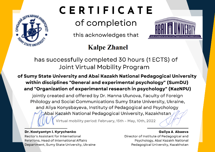 Программа виртуальной мобильности Факультета иностранной филологии и социальных коммуникаций Сумского государственного университета и Института педагогики и психологии КазНПУ им. Абая