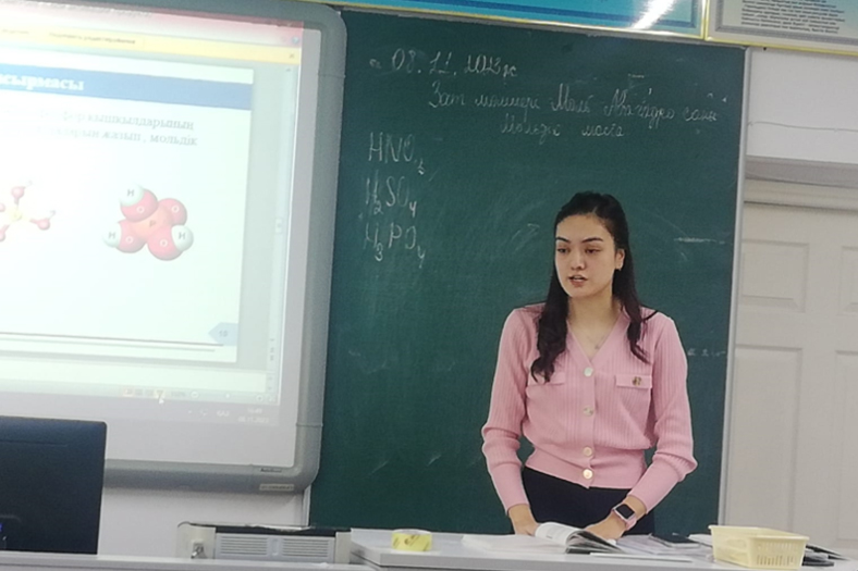 В рамках психологического сопровождения педагогической практики студентов выпускных курсов 10 ноября 2023 года старший преподаватель кафедры общей и прикладной психологии Института педагогики и психологии Кунсулу Тусубекова присутствовала на открытом занятии студентов специальности «6B01512-Химия-биология» Салатдин Айгерим и Даутовой Альбины в школе-гимназии №172 г. Алматы.