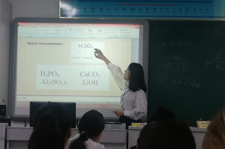 На уроке также присутствовали заместитель директора по учебной работе Ахматбекова Анар, руководитель практики по предмету «Химия» Жумадилов Мурат, учителя химии Баймаханова Бану, Игибаева Галия, методист по дисциплине «Химия» Утемисова Арайлым.