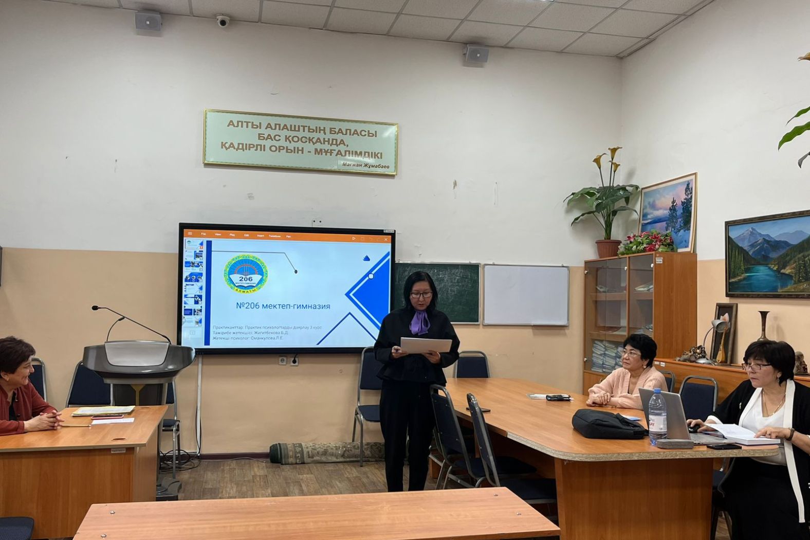 Базами педагогической практики являлись школы-гимназии №6, №34, №206, №53 и общеобразовательные школы №43, №185 Алматы. В конференции приняли участие заведующая кафедрой общей и прикладной психологии Ниетбаева Гулмира, организатор практики Тукебаева Саулет, методисты практики Абишева Эльмира, Акажанова Алма, Жигитбекова Бахыт, Момбиева Гульмира и Кожахметов Дауирхан.