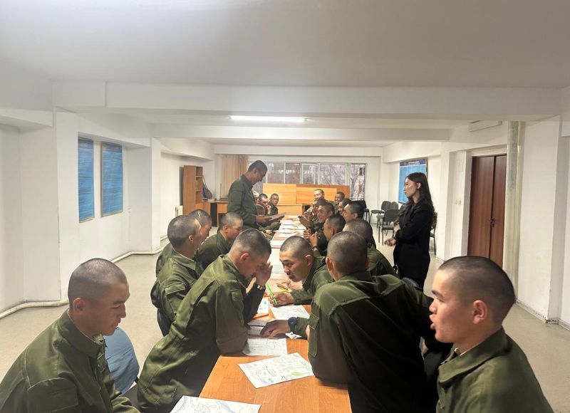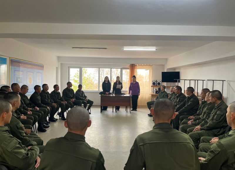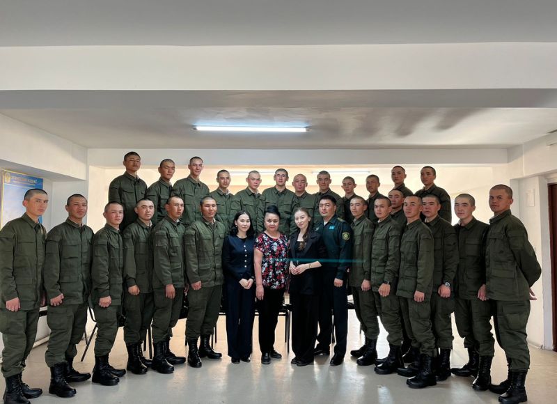 Профориентационная работа с курсантами осеннего призыва 2024 года пограничной службы КНБ алматинской области 8 ноября 2024 года на основании заключённого меморандума между КазНПУ имени Абая и Департаментом Пограничной службы КНБ РК по Алматинской области, заведующая кафедрой Гульмира Ниетбаева и преподаватель кафедры общей и прикладной психологии Кунсулу Тусубекова организовали и провели серию профориентационных мероприятий для военнослужащих срочной службы.