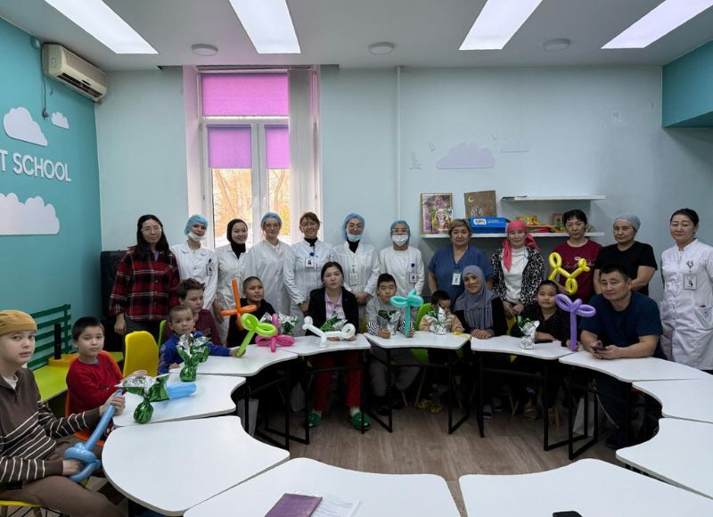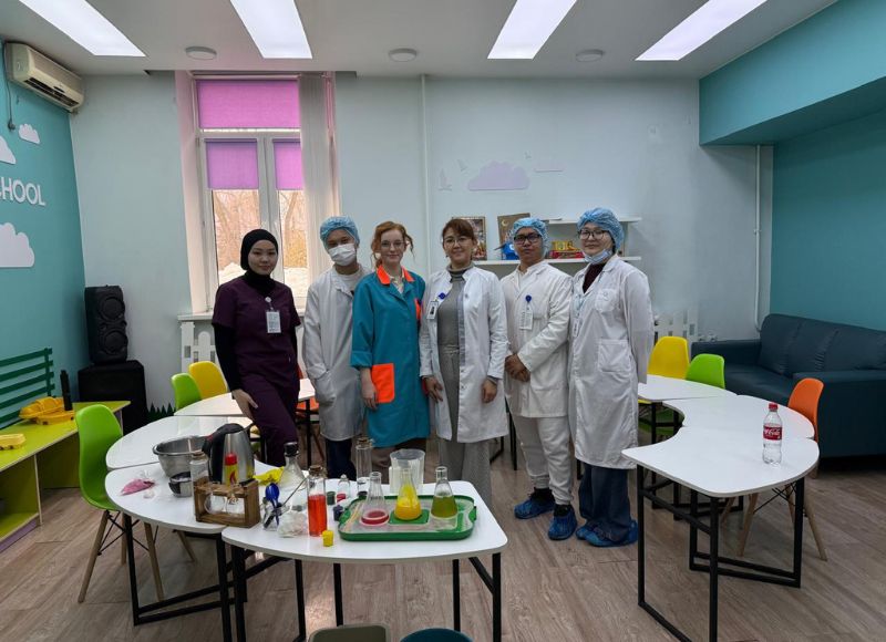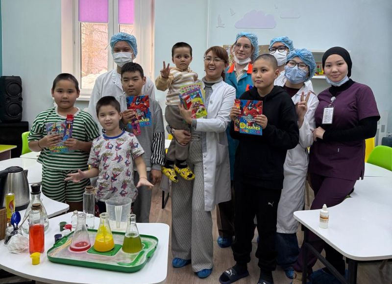 Тренинг для детей и родителей 15 февраля - Международный день детей, больных раком. В связи с этим, 17 февраля 2025 года студенты-практиканты КазНПУ имени Абая образовательной программы «6В03111 - Подготовка практического психолога» русского и казахского отделений: Клюг Ангелина, Кетова Кристина, Базарбаева Аружан, Гусев Алан, Амирханова Азель, Югай Владимир, Амангосова Диляра под руководством руководителя отдела психологической и социальной помощи КазНИИРиО Алии Утеуловой организован и проведен психологический тренинг для детей детского отделения Казахского научно-исследовательского института онкологии и радиологии (КазНИИРиО) . Данный тренинг был проведен также с родителями и их детьми с использованием безопасных реагентов, фаер и азотных экспериментов, твистинга для детей. По окончанию тренинга дети участвовали в анимационной викторине, танцевали и самое главное получили небольшие памятные подарки.