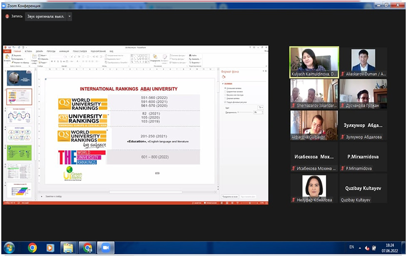 В целях реализации Стратегии развития Abai University на 2022-2025 годы «Abai University - центр академического мастерства» с 7 июня по 7 июля 2022 года Институт естествознания и географии проводит платный курс повышения квалификации в объеме 144 часа для преподавателей Ташкентского государственного педагогического университета (Узбекистан). Тема - «Естественнонаучное образование: формирование и развитие профессиональных компетенций». По окончании обучения слушателям выдается сертификат о повышении квалификации.