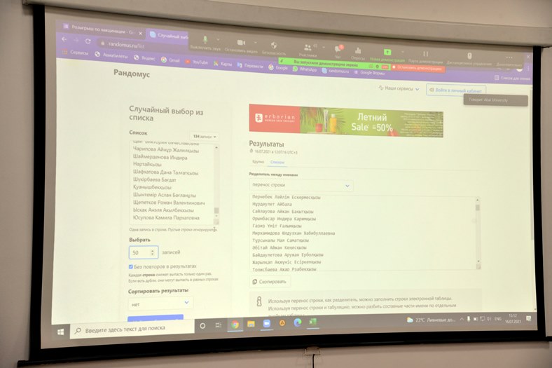 16 июля т.г. было проведено итоговое мероприятие по определению победителей трех видов розыгрышей среди студентов, получивших первый компонент вакцины с 1 по 15 июля. Для обеспечения открытости проведения розыгрыша были утверждены Правила игры и создана специальная комиссия.
