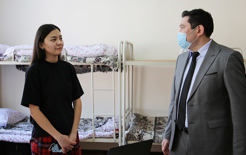 В целях изучения общего состояния студентов, прибывших на обучение во II семестре 2021-2022 учебного года, и их бытовых условий проректор по социальному развитию казНПУ имени Абая Чингиз Нурланов и заместитель директора Департамента по воспитательной, социальной работе и молодежной политике Дидарбек Дильдабек посетили все общежития институтов и провели встречи со студентами.