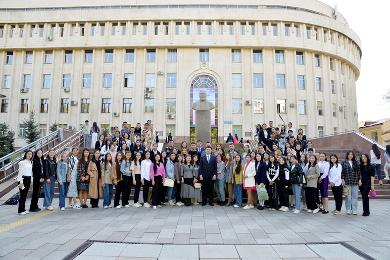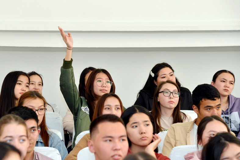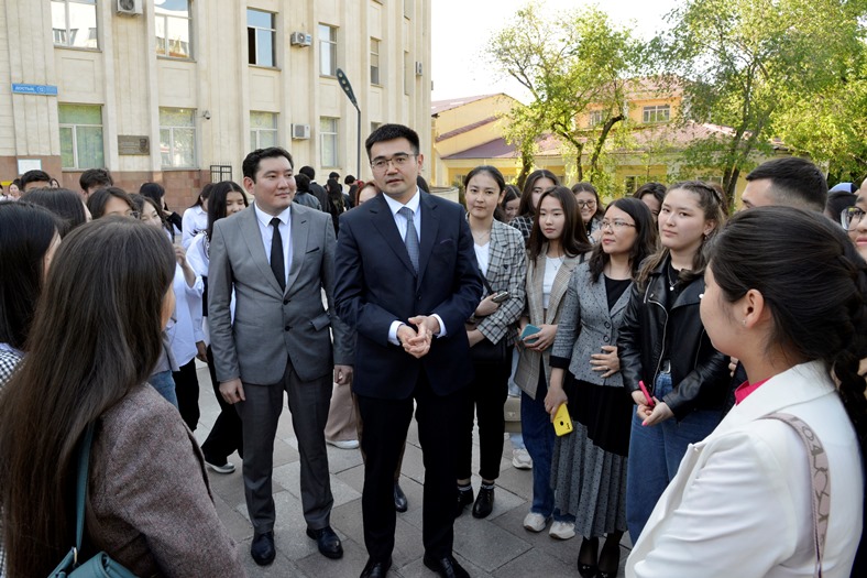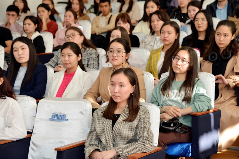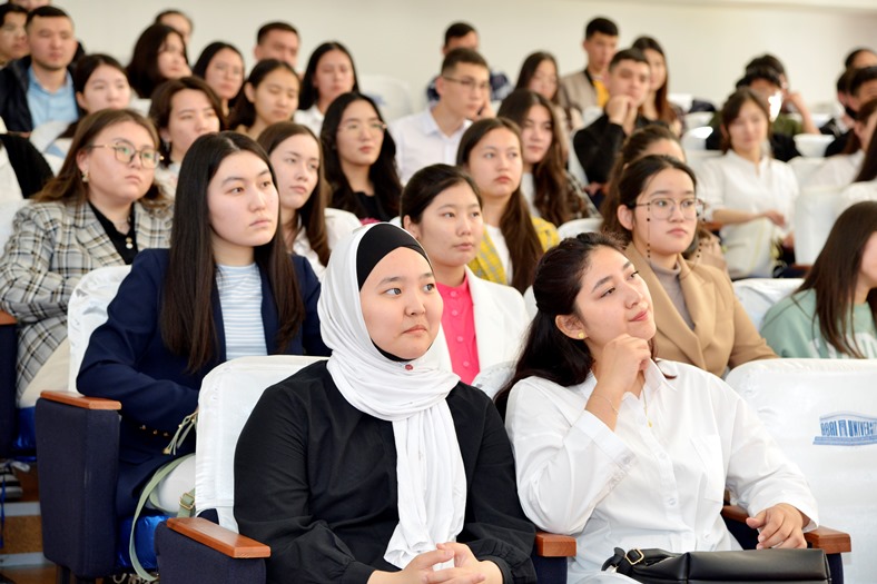 28 апреля 2022 года состоялась встреча председателя Правления-ректора Дархана Билялова и проректора по социальному развитию Шынгыса Нурланова со 100 студентами, прошедшими отбор для участия в проекте дополнительного образования Honors College.