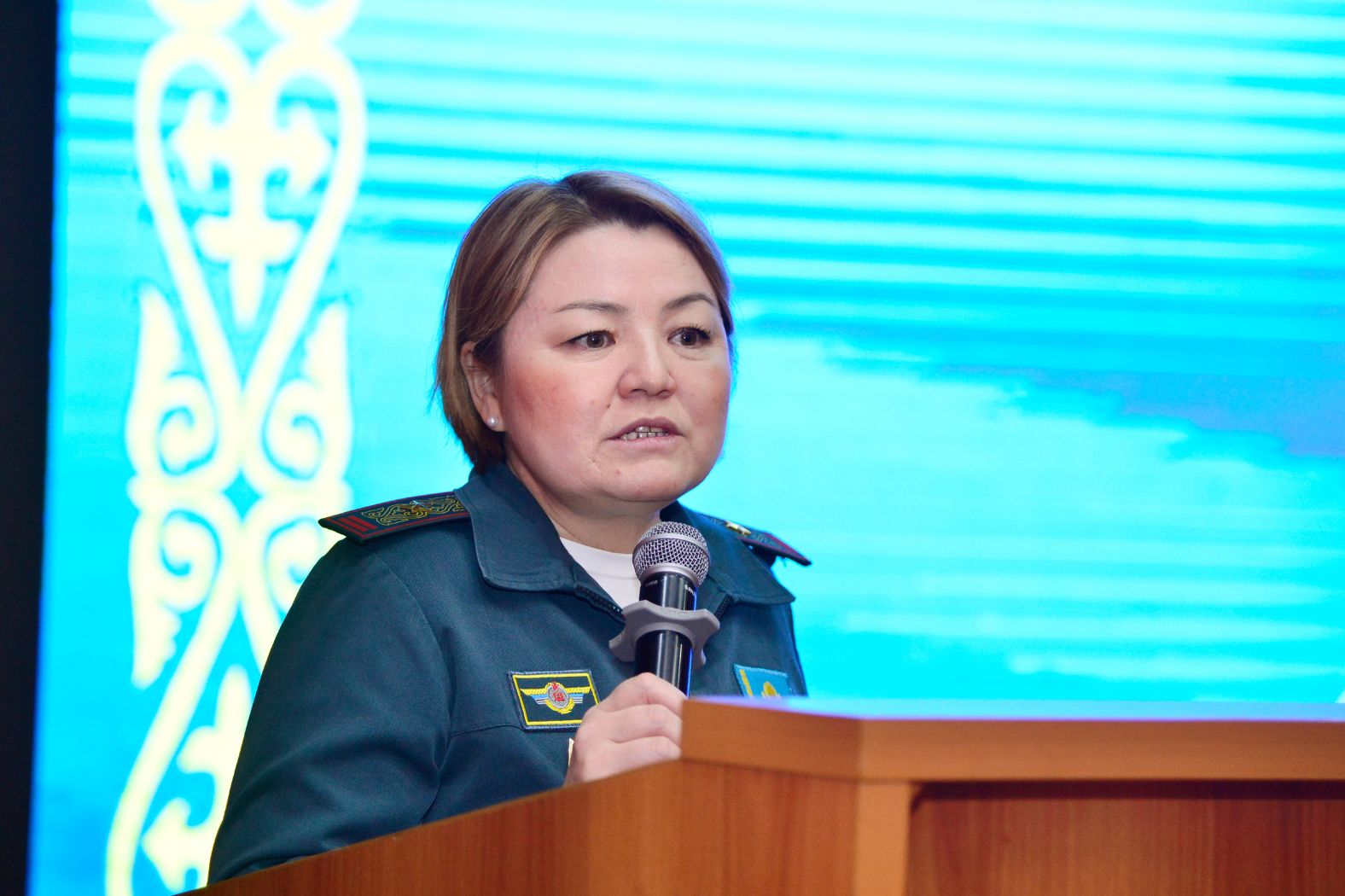 Спикер - старший офицер Управления гражданской обороны ДЧС г. Алматы, майор Баймухамбетова Сандугаш, в ходе лекции она осветила темы «Состав, задачи и основные принципы аварийно-спасательных служб и средств гражданской защиты, действия населения во время землетрясения, до землетрясения и после землетрясения, «Сооружение тревожной колокольни», «Неструктурная сейсмическая стабилизация», «Организация эвакуационных мероприятий при чрезвычайных ситуациях» и другие о чрезвычайных ситуациях техногенного характера.