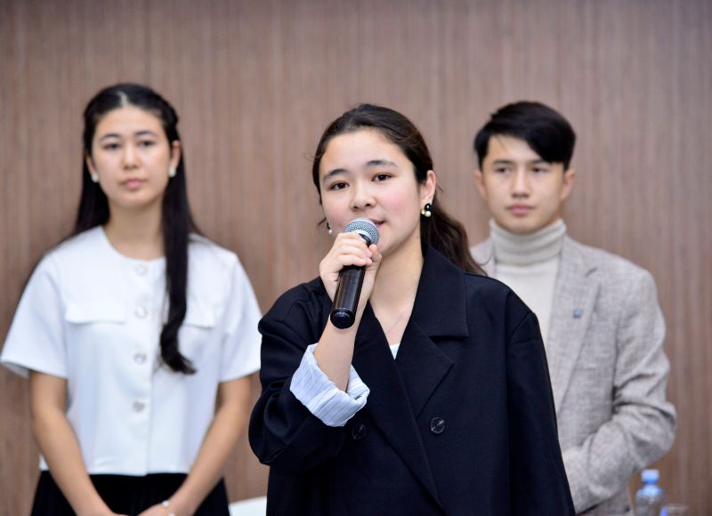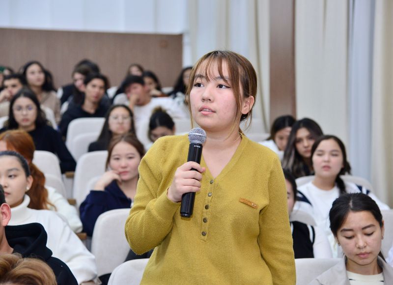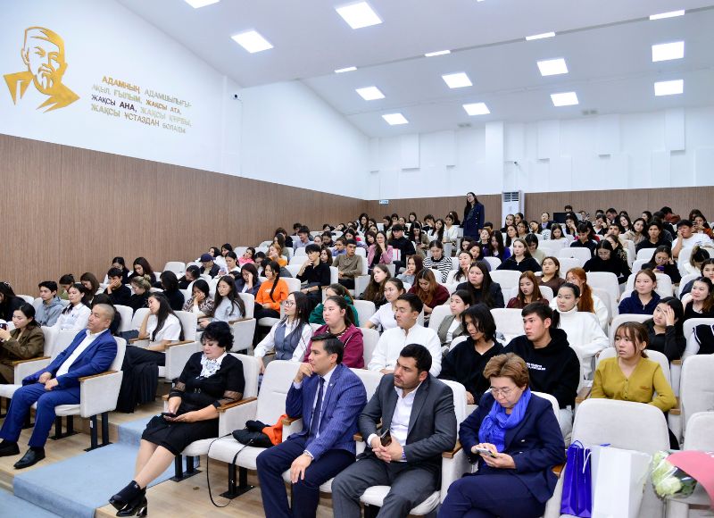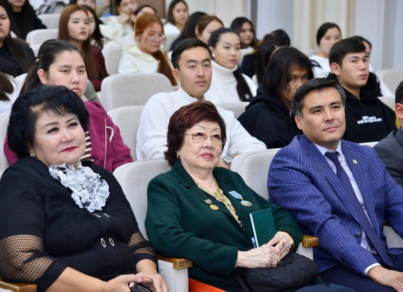На встрече присутствовали проректор Максат Жакау, директор департамента молодежной политики Рахимберды Жетыбай, Салтанат Айбергенова - дочь поэта Толегена Айбергенова, а также более 150 студентов.