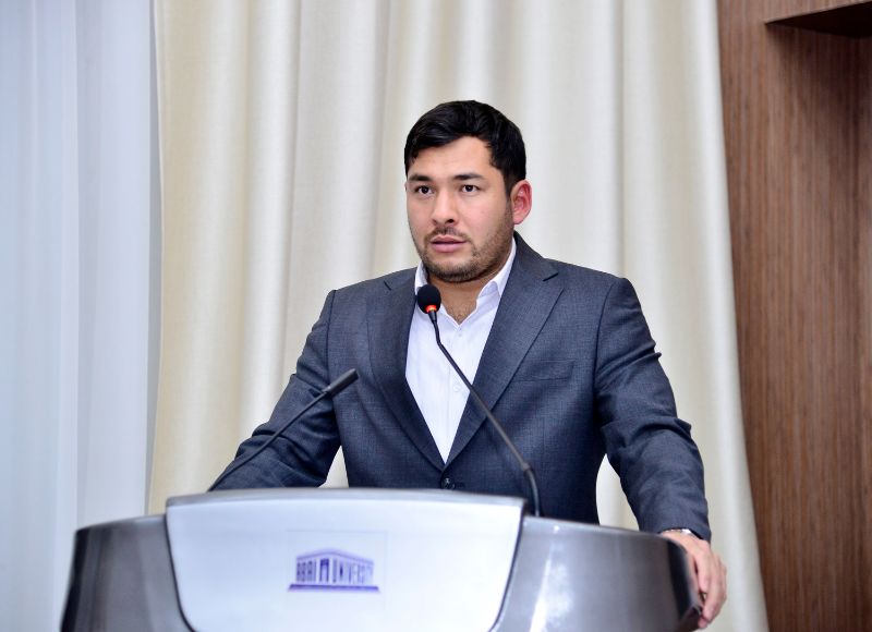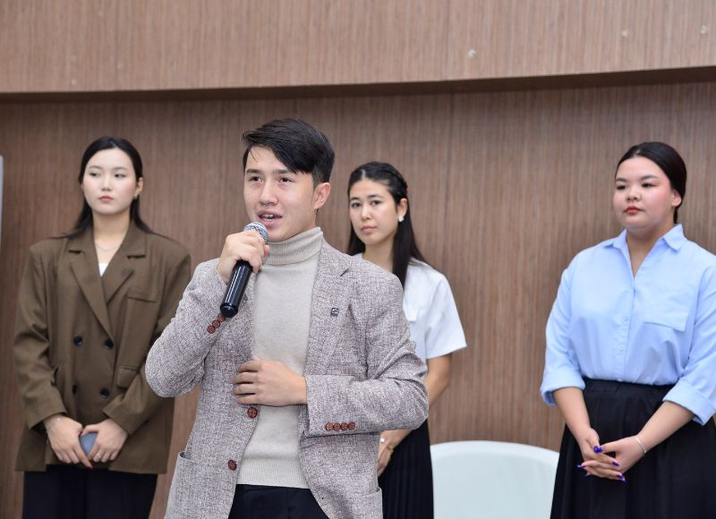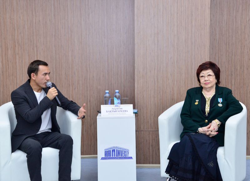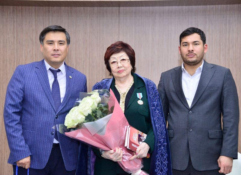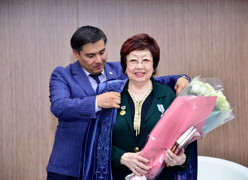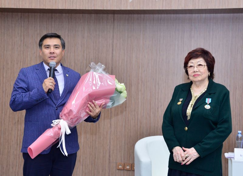В завершение мероприятия проректор по социальному развитию университета Максат Жакау вручил почетному гостю Акуштапу Бактыгереевой цветы от имени председателя правления-ректора университета Болата Тлепа.
