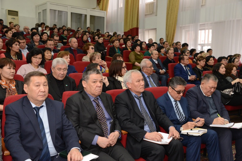 Обращаясь к коллективу, он отметил: "В этом году наш университет отмечает 90-летний юбилей. За свою многолетнюю историю университет выпустил более 200 000 специалистов и 3000 научных сотрудников. В честь 90-летия запланировано проведение более 70 мероприятий, в том числе городского, республиканского и международного уровней. В рамках подготовки к юбилею была проделана большая работа. В целях качественного обслуживания студентов и оказания социальных услуг обучающимся по принципу «одного окна» был открыт Центр «Шапагат», проведены ремонтные работы в столовой учебного корпуса №1 и актовом зале учебного корпуса №5. 517 студентам, нуждающимся в социальной поддержке, предоставлены скидки на обучение в размере 10 - 50%. Разработаны правовые аспекты профилактической работы по борьбе с коррупцией. Утвержден кодекс «Академической честности». С целью повышения качества подготовки будущих специалистов, а также изменения стиля работы и повышения мотивации к саморазвитию у ППС и сотрудников, с 8 по 18 января текущего года впервые организована новая форма повышения квалификации - Зимняя школа «Профессионализм и педагогическое мастерство». Запущена система «Univer»".