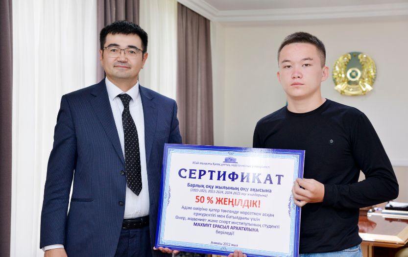 8 августа 2022 года ректор КазНПУ имени Абая Дархан Билялов встретился со студентом 2-го курса Института искусств, культуры и спорта по специальности «Физическая культура Ерасылом Махмутом. Поблагодарив его за храбрость и отвагу, проявленные при спасении малолетнего ребенка, ректор вручил герою специальный сертификат и подарок университета.