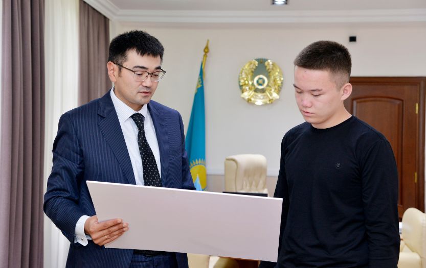 ««От имени всего коллектива и от себя лично благодарю Вас за действительно героический поступок. Рискуя своей жизнью, Вы спасли двухлетнего малыша от падения с 7-го этажа и предотвратили страшную трагедию. Ваш подвиг - пример не только для наших студентов, но и для всей молодежи страны. Гордимся, что такой человек учится в нашем университете. Хочу поблагодарить и Ваших родителей за достойное воспитание такого гражданина, как Вы. Желаю успехов в учебе», - сказал Д.Билялов.