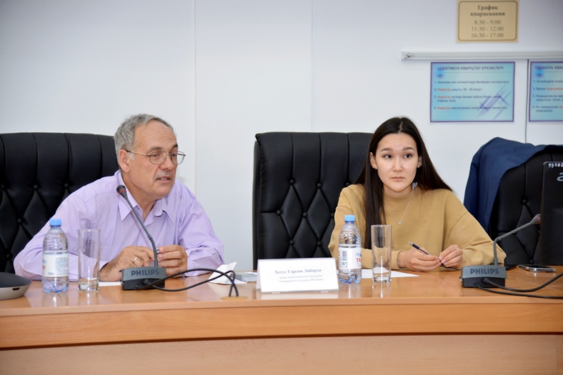 3 октября 2022 года в КазНПУ имени Абая прошла встреча обучающихся и преподавателей кафедры практического английского языка Института филологии с деканом педагогического колледжа Университета Алькала (University of Alcalá) (г. Алькала-де-Энарес, Испания) господином Хесусом Гарсия Лаборда (Jesus Garcia Laborda).