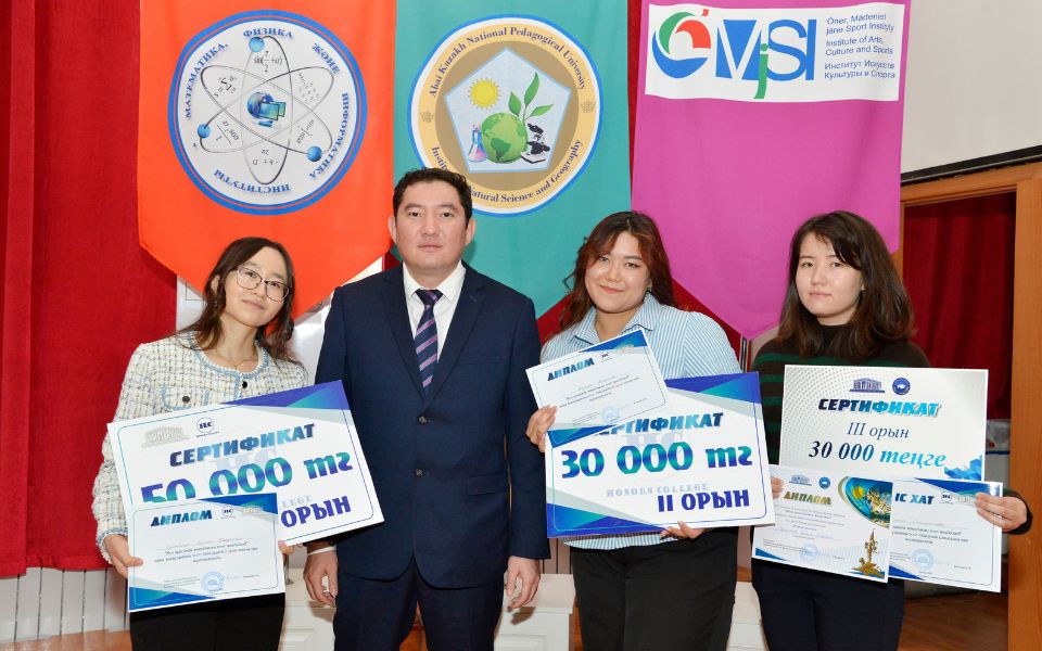 List of winners: By essay in Kazakh 1st place - Abdimanap Dana Kanatovna - 2nd year student of the Institute of Philology, specialty Kazakh language and literature; 2nd place - Tlebaldy Aigerim Erlanovna - 1st year student of the Institute of Pedagogy and Psychology, specialty Special pedagogy: speech therapy; 3rd place - Dzhambulov Adilkhan Nurlanovich - 4th year student of the Institute of Mathematics, Physics and Computer Science, specialty training of physics teachers; By essay in Russian 1st place - Ibragimova Alina Damirovna - 1st year student of the Institute of Pedagogy and Psychology, specialty pedagogy and methodology of primary education; 2nd place - Kusmanov Bekbolat Serikzhanuly - 1st year student of the Institute of Philology, specialty two foreign languages; 3rd place - Diana Sergeevna Syropyatova - 3rd year student of the Institute of Philology, specialty "Foreign language: two foreign languages"; By essay in English 1st place - Zhorabekova Samal Abubakirovna - 4th year student of the Institute of Philology, specialty "Foreign language:two foreign languages"; 2nd place - Togzhan Aydarova - 4th year student of the Institute of Philology, specialty "Foreign language:two foreign languages"; 3rd place - Turekeldy Aykhan Sunkarovna - 3rd year student of the Institute of Philology, specialty "Foreign language:two foreign languages";