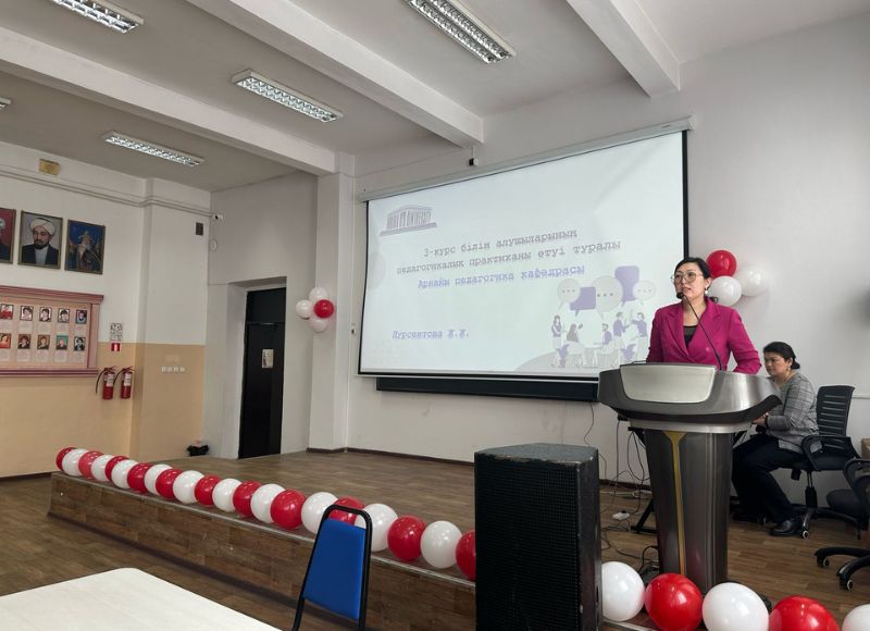 Итоговая конференция по педагогической практике 27 февраля 2025 года кафедрой специальной педагогики КазНПУ имени Абая была проведена итоговая конференция по педагогической практике студентов 3 курса (4 года), 2 курса (3 года) специальностей «6B01901-Специальная педагогика: Сурдопедагогика», «6B01902 - Специальная педагогика: Логопедия», «6B01903-Специальная педагогика: Олигофренопедагогика». Все студенты представили подробные отчеты о педагогической практике.