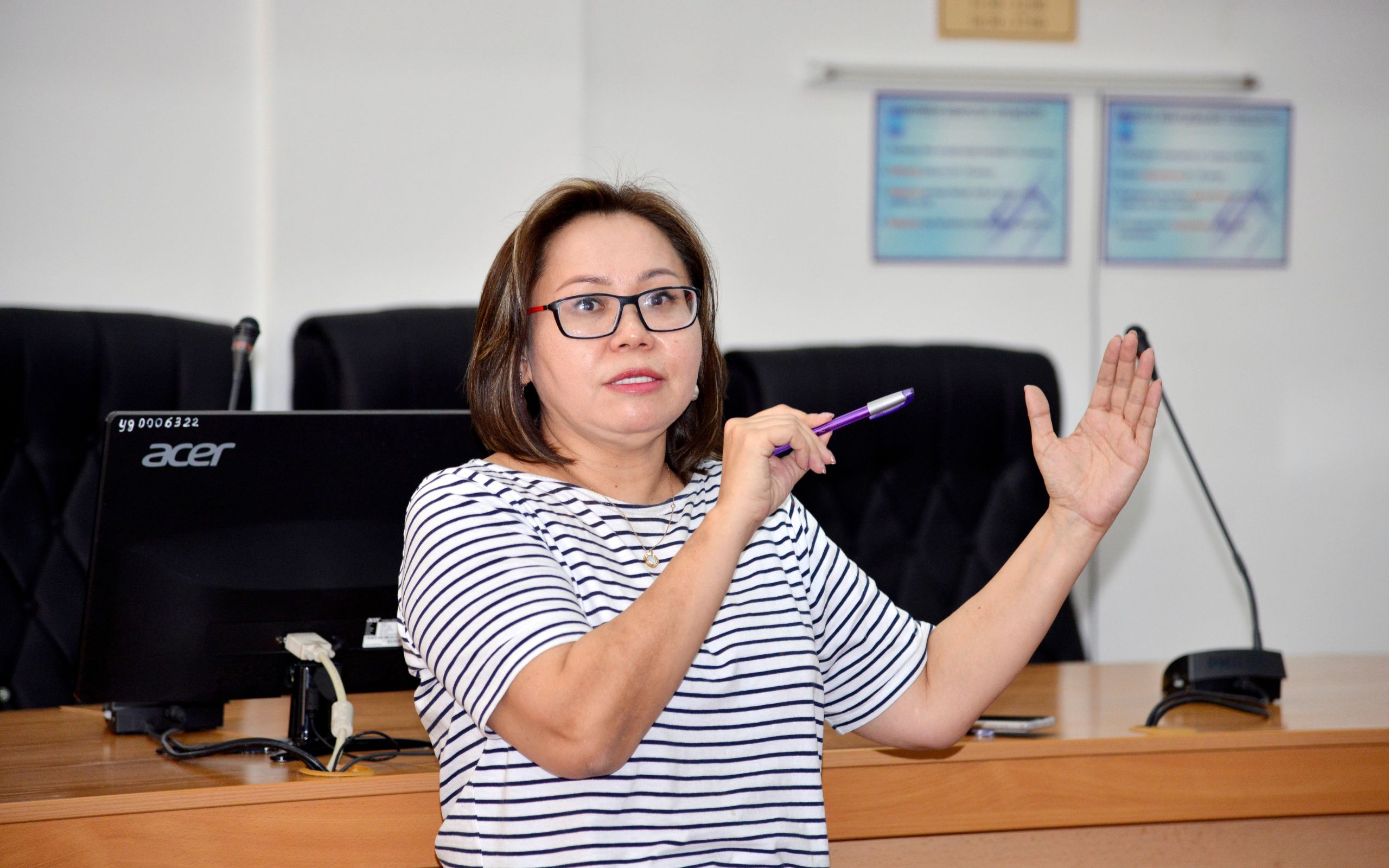 Затем был заслушан доклад проректора по академическим вопросам Гульжан Жарасовой по проектам подготовки педагогов и педагогического образования, отвечающих требованиям современного общества. В докладе были рассмотрены вопросы оптимизации, совершенствования и цифровизации учебного процесса и подведены итоги прошедшего учебного года по образовательным программам университета.