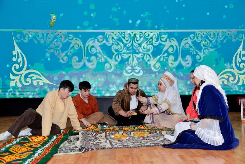 В ходе праздничного вечера активная молодежь института пела песни, исполняла кюи и подарила всем отличное настроение. В целях развития национальных традиций была проведена игра со зрителями «Асык», участников мероприятия угостили баурсаками и Наурыз-коже.