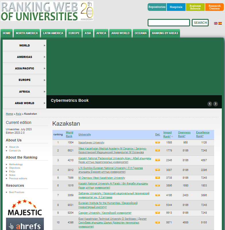 Webometrics: Abai University вошел в ТОП- 5 лучших вузов РК