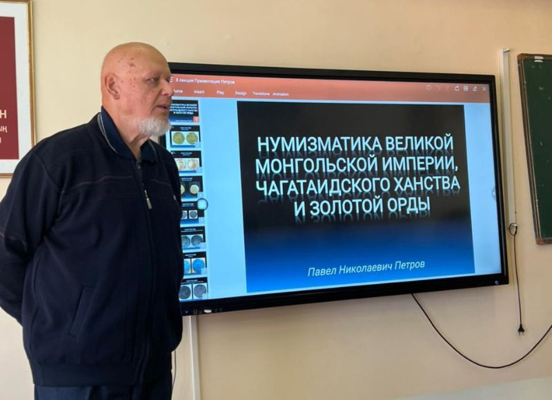 Лекции по нумизматике 16 по 24 октября 2024 года приглашенный кафедрой «Древней и средневековой истории Казахстана» известный ученый нумизмат, кандидат исторических наук П.Н. Петров (РФ) провел для молодых ученых и студентов Факультета истории и права лекции на тему «Нумизматика Казахстана». П.Н. Петров в своих лекциях ознакомил с нумизматической терминологией и нумизматическими источниками, а также освятил вопросы товарно-денежных отношений в период Великой Монгольской империи, Улуса Джучи (Золотой Орды) и Чагатайского ханства. Лекции известного зарубежного ученого вызвали интерес у студентов. Они сделали обратную связь с ученым и получили ответы на интересующие их вопросы.
