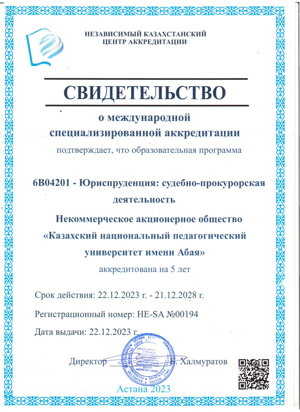 28-29 ноября 2023 года КазНПУ имени Абая успешно прошел программную (специализированную) аккредитацию в Независимом Казахстанском Центре Аккредитации (НКЦА) по 14 образовательным программам из них 9 образовательных программ сроком на 5 лет и 5 образовательных программ сроком на 7 лет.