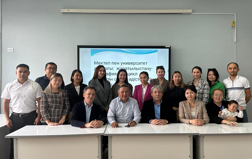 30 сентября 2023 года в Институте естествознания и географии состоялся круглый стол «Диалог школы и университета: обновление методик преподавания дисциплин естественно-географического цикла». Перед докторантами института выступили профессора Б.Ш.Абдиманапов и Ж.Б.Шилдебаев, доцент З.О.Унербаева, старший преподаватель А.У.Абулгазиев и заместитель директора по науке ИЕГ К.К.Муздыбаева. Приглашенные спикеры являются авторами школьных учебников по естествознанию, географии, биологии и химии. На круглом столе были рассмотрены связь учреждений высшего и среднего образования, проведение педагогической практики студентов в школе, вопросы по методике преподавания дисциплин естественно-географического цикла. Спикеры поделились опытом написания учебников, новых методик, а так же проконсультировали докторантов по выбранным темам докторских диссертаций.