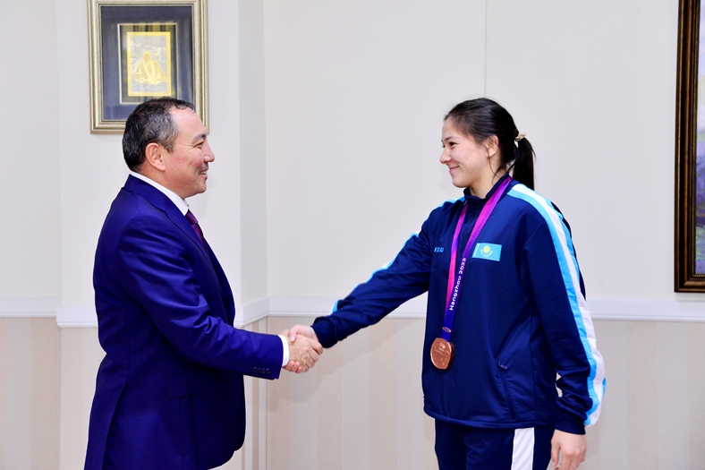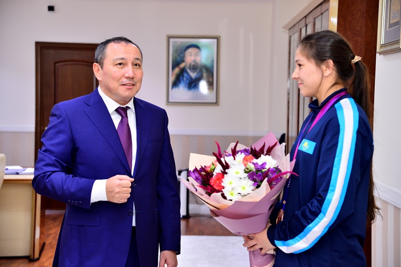 Ректор поздравил Эсмигуль Куюлову с важными спортивными достижениями и отметил, что ее усердие, талант и преданность спорту служат примером для всех студентов университета. Эта встреча подчеркивает важность поддержки и развития спортивных и творческих талантов среди студентов КазНПУ имени Абая.