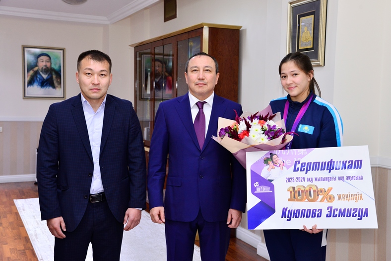 В знак признания достижений Эсмигуль и поддержки ее спортивной карьеры университет предоставил ей 100%-скидку на оплату обучения за 2023-2024 учебный год. Кроме того, ей были вручены специальные подарки от родного вуза. Жомарту Сагындыкову вручены имиджевая продукция университета и специальные подарки за заслуги в подготовке своих студентов к крупным соревнованиям.