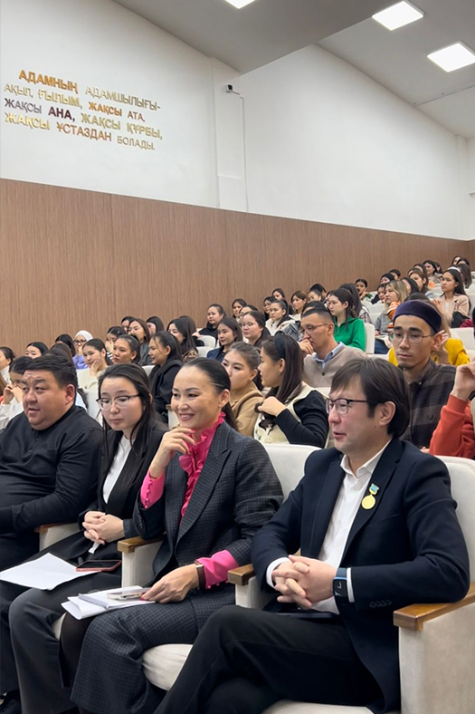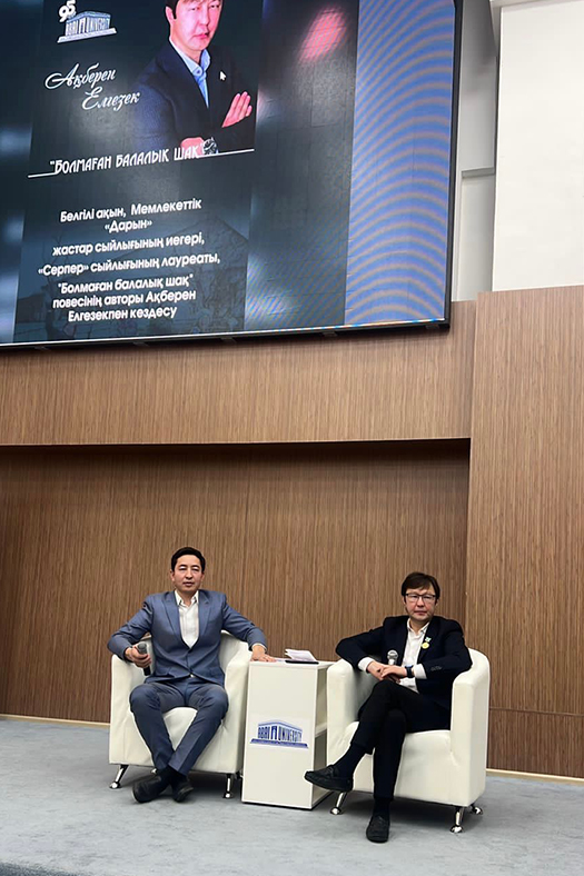 On November 15, 2023 students of Abai KazNPU met with the author of the story "Bolmaghan balalyk shak" Akberen Yelgezek. He is a famous poet, winner of the Kazakh youth award "Serper" named after T.Aybergenov, the State Youth Award "Daryn", the public award "Altyn kalam", head of the public fund "Support of Kazakh literature". The meeting was organized by the National Educational Centre and the Institute of Philology.