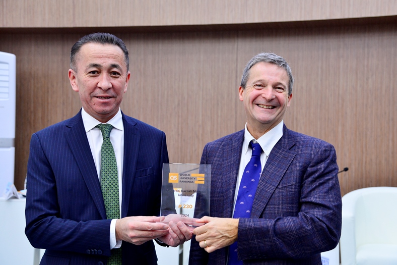 On November 16, 2023, an important event took place at Abai University - the presentation of a commemorative badge and certificate to the best universities in the country, which took high positions in the international QS World University Rankings-2024.