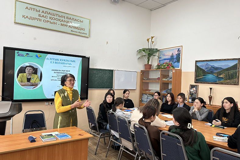 On November 16, 2023, a lecture was given to the 1st year students of the educational program "6B01201-Preschool Education and Upbringing" of the Institute of Pedagogy and Psychology at the Department of Preschool Education and Social Pedagogy by the veteran of the field R.R.Abishova on the theme "National value - the future of the country". She noted that upbringing of new generations, formation of feelings of patriotism, respect for traditions, pride for their people and native country in the educational process is the main task facing future teachers. During the event, students were active, asked questions about national education, spiritual and moral values and received comprehensive answers.