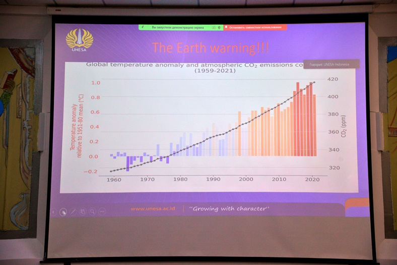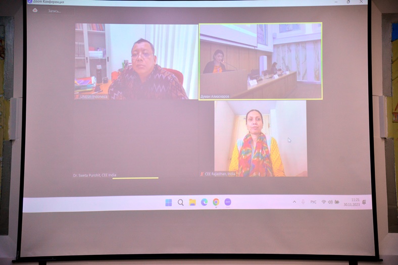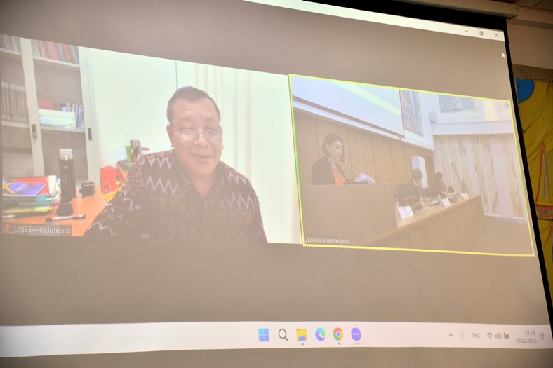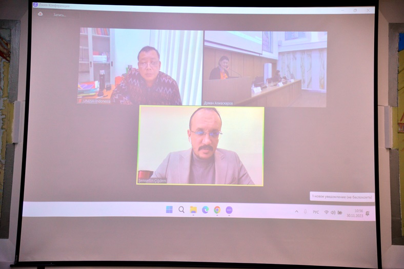 Так, профессор Сурабайского университета (Индонезия), доктор педагогических наук Эко Харийоно, который выступил с докладом «Сотрудничество в области образования между Индонезией и Казахстаном по вопросам изменения климата» и остановился на эффективности обмена опытом между странами в рамках азиатской рамочной программы подготовки учителей по проблеме изменения климата, предложил в перспективе дальнейшее совершенствование процесса международного обмена опытом. Кроме того, он уделили особое внимание реализации Азиатской рамочной программы подготовки учителей по вопросам изменения климата в Индонезии, особенностях программы и методики преподавания. Предложено развивать связи между КазНПУ имени Абая и Сурабайским университетом, что включает в себя ряд мероприятий: исследовательское сотрудничество в рамках образования по проблемам изменения климата; программа общественных работ по борьбе с изменением климата; обмен опытом между студентами; приглашение лекторов. В настоящее время такой обмен опытом интенсивно происходит между Казахстаном, Монголией, Китаем, Индией, Японией, Таиландом, Филиппинами, Малайзией и Индонезией.