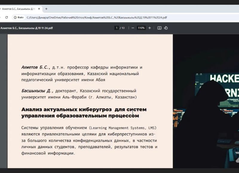 В рамках этого сотрудничества 19 ноября 2024 года был организован и проведен Международный научный вебинар «Теоретические и методические основы информатизации образования (Цифровые технологии и искусственный интеллект в образовании)». Ведущая цель вебинара - это обмен опытом педагогами-исследователями обсуждению актуальных проблем информатизации образования в условиях стремительного развития цифровых технологий и их масштабного внедрения в сферу образования. В Вебинаре были заслушаны основные доклады: