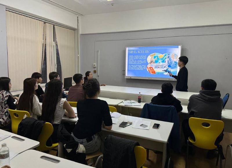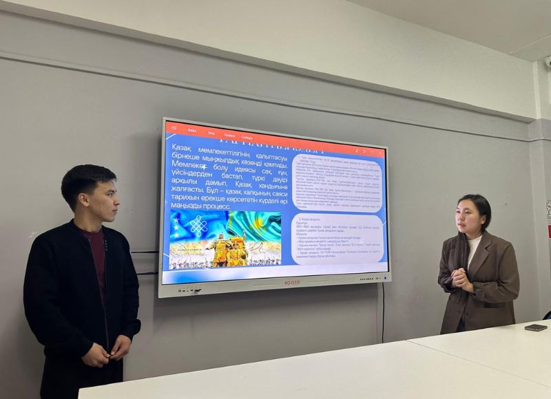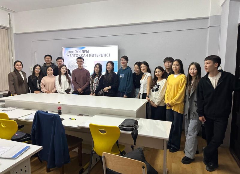 9 декабря 2025 года старший преподаватель кафедры гуманитарных наук факультета Истории и права Гульнара Рахимова провела со студентами 2-го курса специальности «Математика» учебно-воспитательный час на тему «Возвышенная страна-независимость!». Мероприятие началось с Минуты молчания памяти жертв декабрьских событий 1986 года. Затем студенты представили специальную программу, посвященную Дню независимости РК.