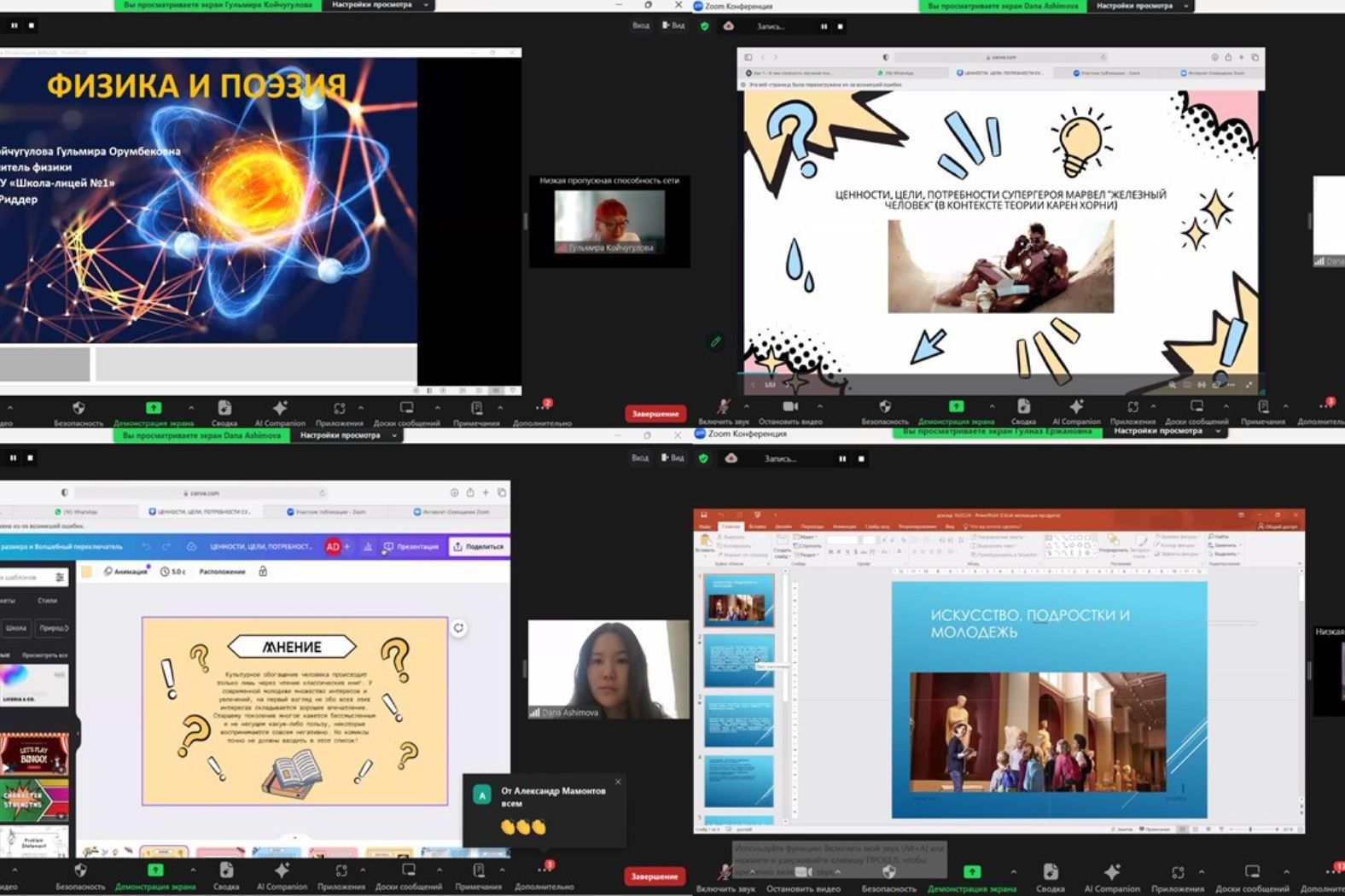 Экспертом научной дискуссии выступила Роза Акмагамбетова - руководитель отдела «Воспитательная работа и дополнительное образование» Городского научно-методического центра новых технологий в образовании Управления образования г. Алматы. В первой части выступили спикеры с докладами, затем на интерактиве участники в командах обсуждали такие вопросы как физика и поэзия, ценности и потребности супергероя в комиксах (в контексте теории Карен Хорни), влияние искусства на подростков и молодежь, музыкотерапия в работе с детьми с отставанием в развитии, любовь и доброта как вечные ценности. По итогам обсуждения команды получили дипломы первой, второй и третьей степени.