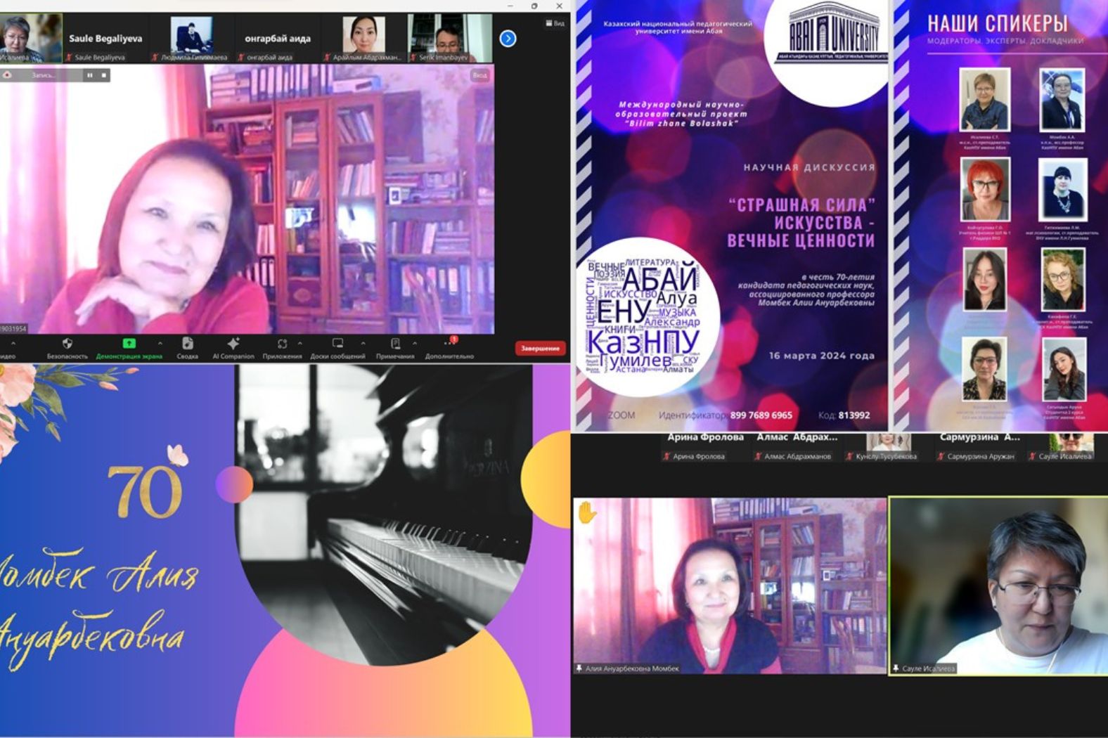 Научная дискуссия проводилась в честь 70-летия ассоциированного профессора Момбек Алии Ануарбековны, и была посвящена актуальным вопросам современного образования, влияния искусства и вечных ценностей на формирование эмоционального интеллекта, развития творческих навыков и критического мышления молодежи.