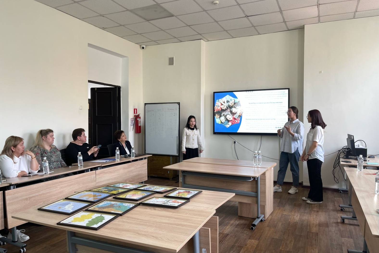 22.04.2024 Круглый стол на тему «Диалог на стыке между теорией и практикой: новые подходы в развитии дошкольного образования» 19 апреля 2024 года на кафедре дошкольного образования и социальной педагогики Института педагогики и психологии КазНПУ им. Абая состоялся Круглый стол на тему «Диалог на стыке между теорией и практикой: новые подходы в развитии дошкольного образования» с участием представителей городского дошкольного ресурсного центра г. Алматы: руководителя Карасевой Н.В. и методистов Раимовой Л.Н., Мустафаевой А.С. ассоциированного профессора Абитовой Г.Т. и магистрантов 1 курса направления подготовки «7М012 - Дошкольное обучение и воспитание». Во время встречи представители дошкольных организаций поделились своим уникальным опытом в реализации проекта «Перезагрузка: международный уровень» (Сингапур) и представили свои проекты: заведующая детского сада №123 Е.Г. Гончарова на тему «Будь природе другом» и заведующая детского сада №151 А.А. Байбосынова А.А., мотодист А. Ибрагимова на тему «Волшебство бумаги».