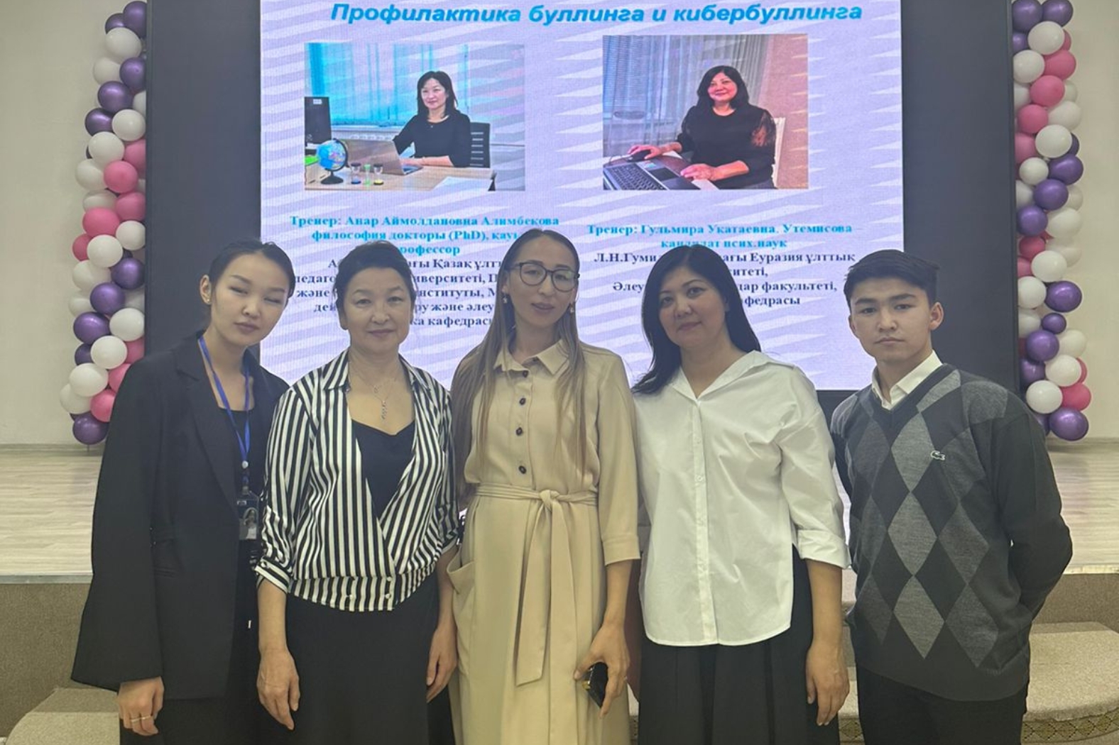 22.04.2024 Изучение актуальных аспектов буллинга в отношении детей и организация профилактических мероприятий С 15 по 18 апреля 2024 года в рамках проекта «Разработка профилактических мер и изучение актуальных аспектов буллинга в отношении детей» ассоциированный профессор кафедры дошкольного образования и социальной педагогики Института педагогики и психологии КазНПУ имени Абая Алимбекова Анар и кандидат психологических наук из ЕНУ имени Л.Гумилева Утемисова Гульмира провели в Алматы тренинги для школьников и мастер-классы для классных руководителей и практикантов на тему «Буллинг и кибербуллинг: методы профилактики и пути преодоления» (школа-гимназия №202, школа-лицей № 173).