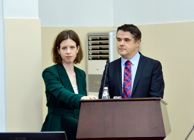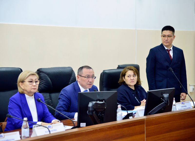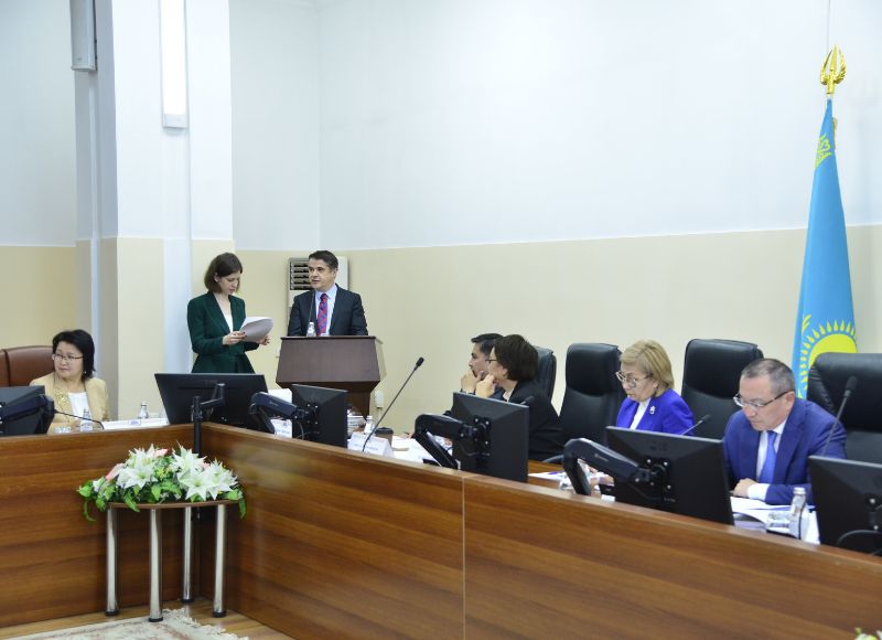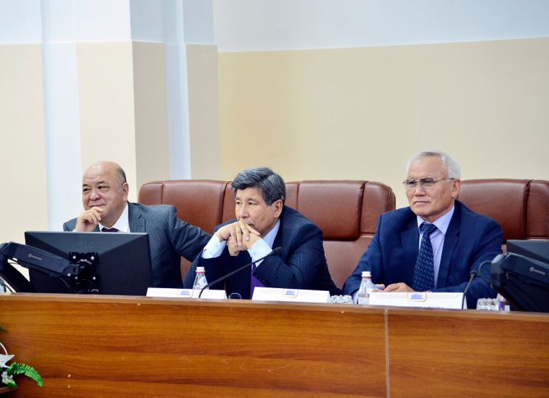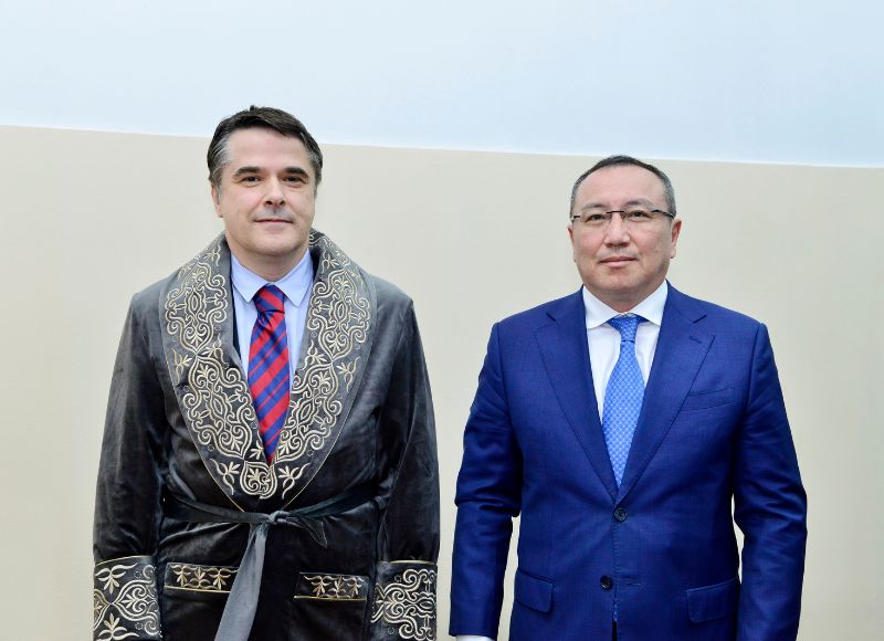 В ходе встречи ректор Болат Тлеп представил приглашенного почетного гостя доктора юридических наук, профессора, директора Института права, экономики и государственного управления Университета Лотарингии (Франция) Пьера Тиффина.