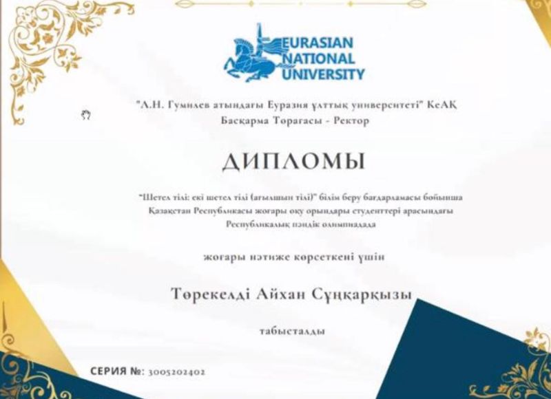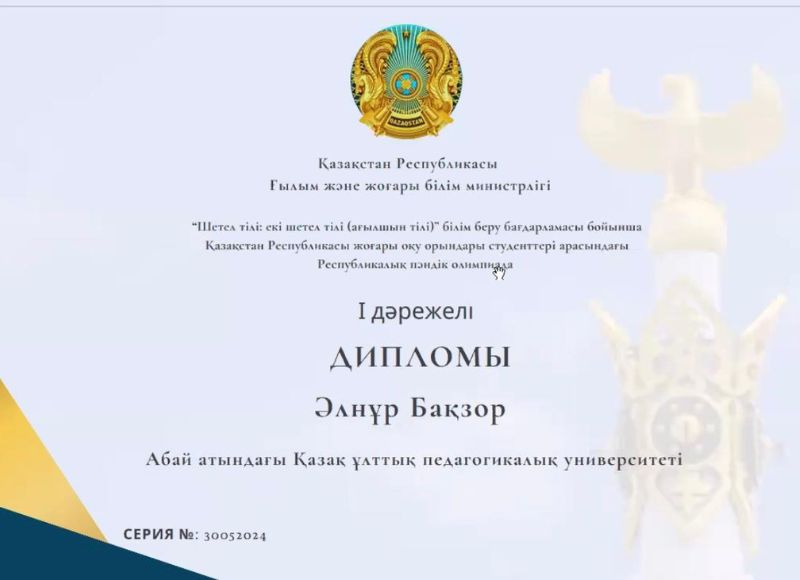 По результатам республиканской олимпиады студент Әлнұр Бақзор был награжден дипломом I степени, а студенты Төрекелді Айхан и Өскенова Айсана были награждены дипломами за отличные результаты. Научный руководитель - ассоциированный профессор Дана Шаяхметова.