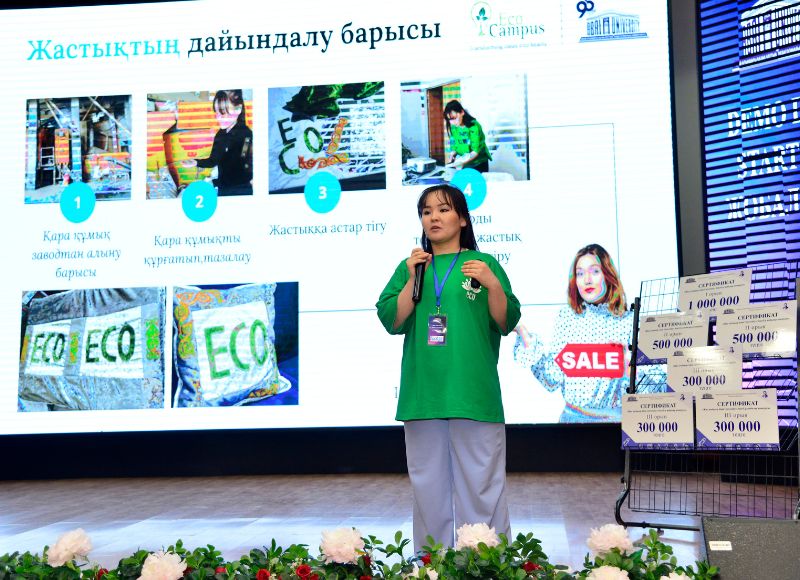 Обладателями первого места и денежнего приза в размере 1 млн тенге стала команда «Ecolife» со своим проектом «Magic Pillow» - производство подушек из гречневой лузги!