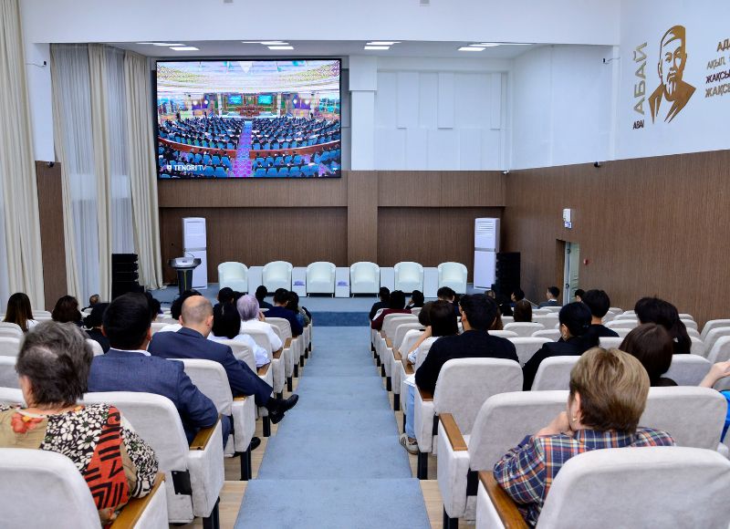 02.09.2024 Коллектив Abai University поддерживает инициативы Президента РК 2 сентября 2024 года коллектив КазНПУ имени Абая с большим воодушевлением выслушал Послание Президента страны Касым-Жомарта Токаева народу Казахстана на тему «Справедливый Казахстан: закон и порядок, экономический рост, общественный оптимизм». В мероприятии приняли участие руководство университета, профессорско-преподавательский состав и обучающиеся.