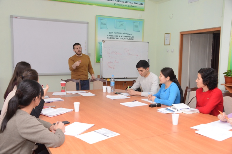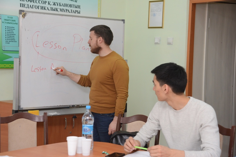 В КазНПУ имени Абая с 8 по 12 января 2018 года проводится тренинг по английскому языку для преподавателей, ведущих занятия на английском языке по специальностям: 5В011000 - Физика, 5В011100 - Информатика, 5В011200 - Химия и 5В011300 - Биология. Тренинг проводят преподаватели центра «InterPess-IH».