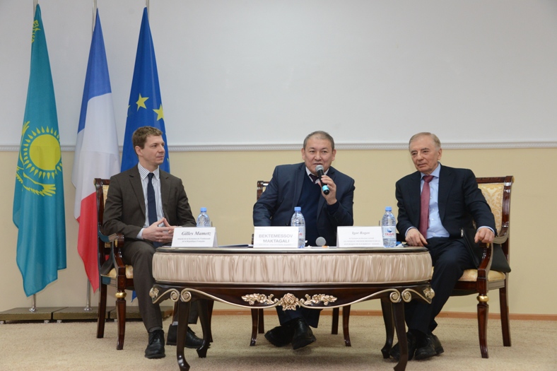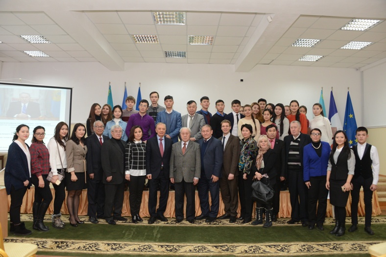 Открыл мероприятие первый проректор Университета, профессор Мактагали Бектемесов, также с приветственным словом к собравшимся обратился атташе по вопросам образования и культуры Посольства Французской Республики Жилль Маметц.