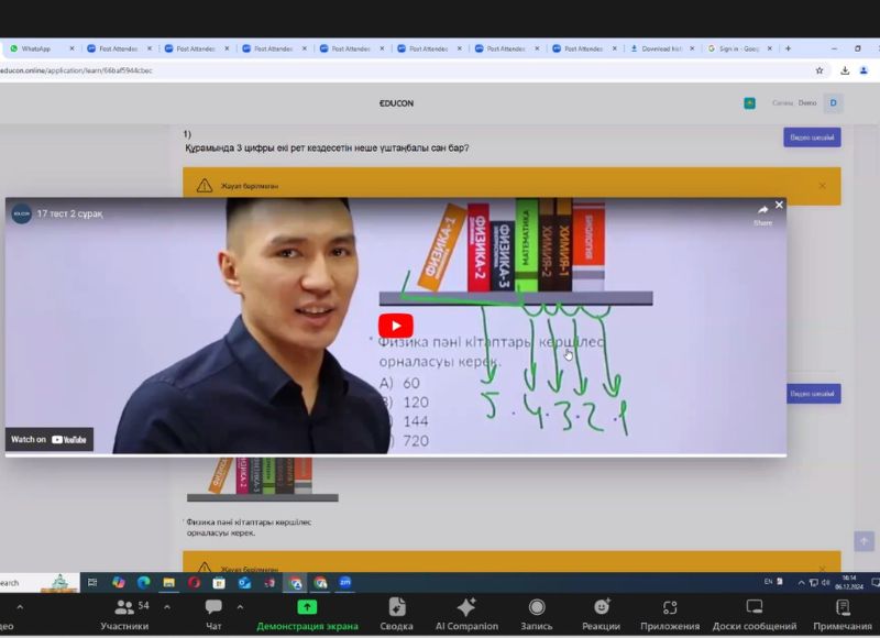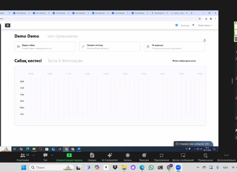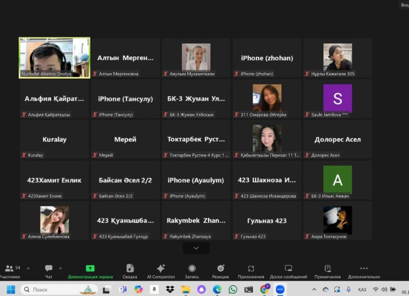 6 декабря 2024 года состоялась онлайн-встреча между Казахским национальным педагогическим университетом имени Абая и учебным заведением "Dostyq School" через платформу Zoom для студентов бакалавриата. Мероприятие было организовано в соответствии с ежегодным планом Карьерного центра университета. Цель встречи: укрепить обмен опытом между школой и университетом, развивать инновационные образовательные программы, совершенствовать процесс подготовки будущих учителей, а также предоставление студентам профессиональной ориентации.